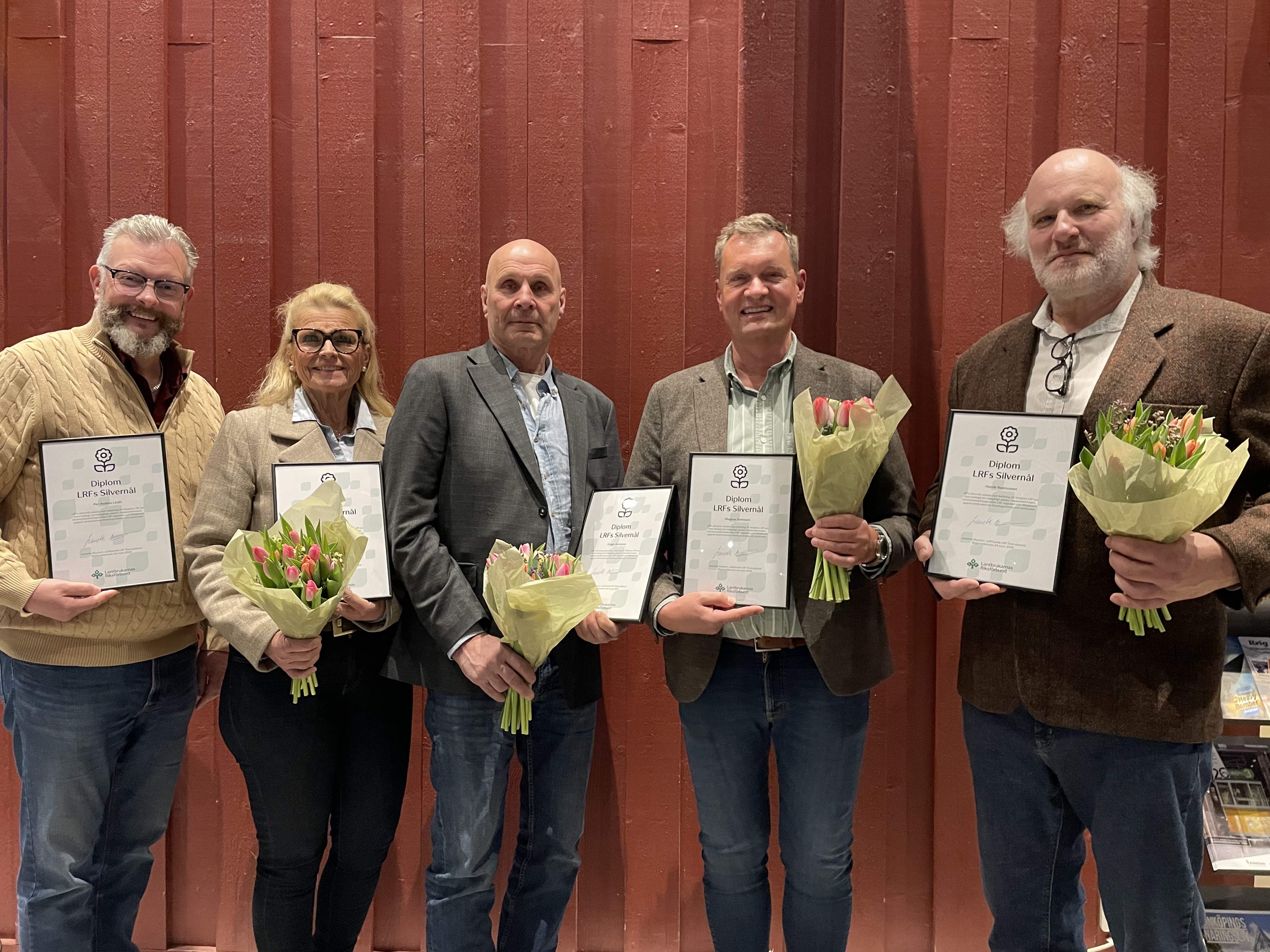 Silvernålsmottagare. Fr.v. Per-Anders Lindh, Charlotte Önnestedt, Greger Arvidsson, Magnus Svensson och Henrik Rasmussen.